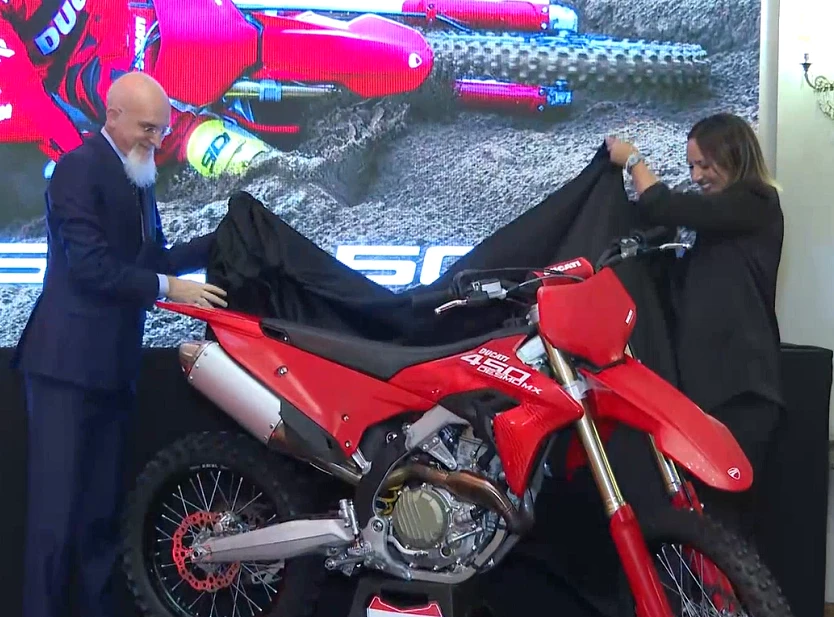 Na premijernom predstavljanju terenca Ducati Desmo MX450, goste je pozdravio domaćin, italijanski ambasador Luka Gori i rekao da se danas u Italiji obeležava dan sporta.